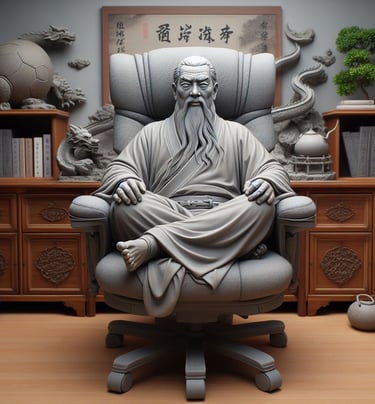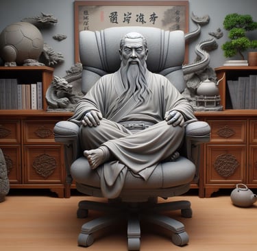 A imagem de Lao Tsé acima, sentado em uma cadeira de escritório corporativo típica do século XXI, é um lembrete do quanto seu convite à aplicação do conhecimento permanece atual e está alinhado ao que acredito e busco realizar em meu trabalho.